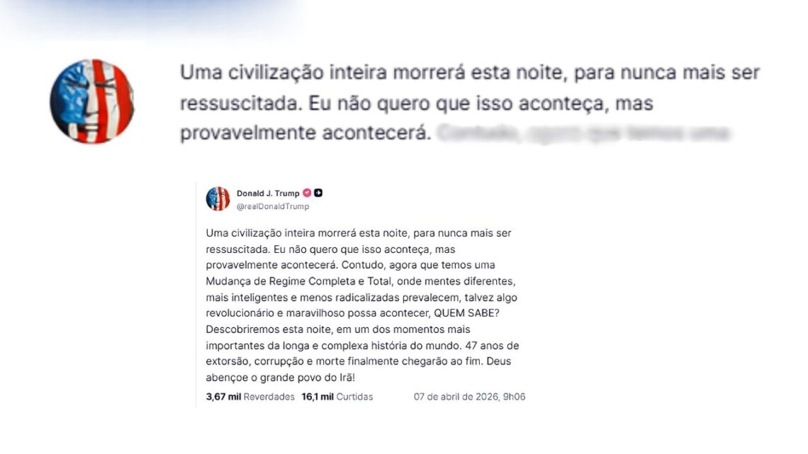 Quando um líder com o peso político e simbólico de Donald Trump fala em “extermínio de uma civilização inteira”, não ...