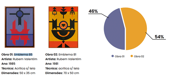 A primeira obra é chamada Emblema 85 e foi concluída por Rubem Valentim em 1985. Já a segunda é a Emblema 81, concluída pelo artista em 1981.