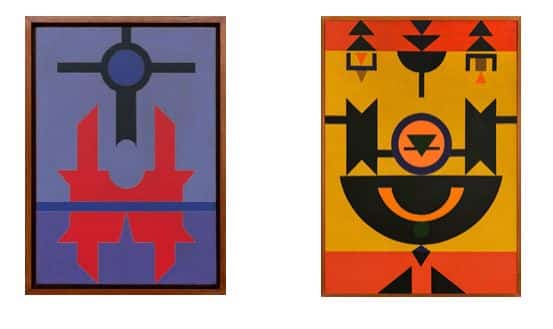A primeira obra é chamada Emblema 85 e foi concluída por Rubem Valentim em 1985. Já a segunda é a Emblema 81, concluída pelo artista em 1981.