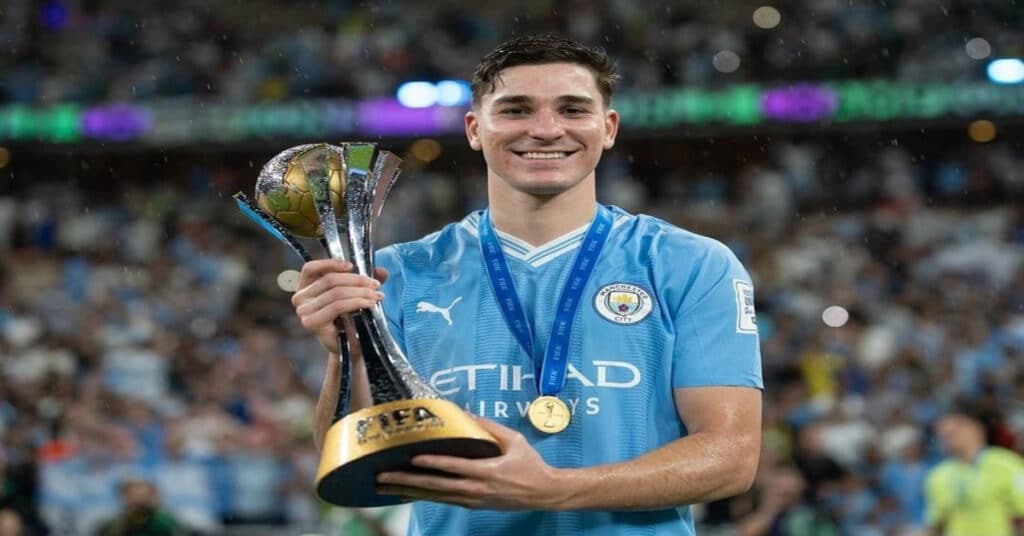 De acordo com informações divulgadas pelo portal Futbol Fichajes, Julián Álvarez teria fechado um acordo para deixar o Manchester City e se transferir para o Atlético de Madrid, da Espanha. A negociação gira em torno de 90 milhões de euros, mais 20 milhões em variáveis, totalizando um valor impressionante que renderá cerca de R$ 687 milhões ao clube inglês.