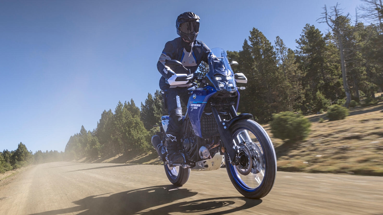 A suspensão da Ténéré 700 foi reforçada com garfos invertidos de 43 mm, completamente ajustáveis, capazes de absorver os impactos e fornecer um ótimo desempenho off-road. A suspensão traseira também foi refinada, combinando novos links e um amortecedor que permite ajustes precisos, tudo inspirado pelo feedback das competições Rally Raid da Yamaha.