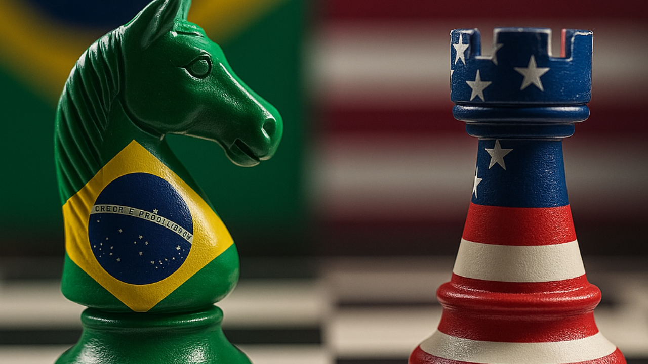 Tarifaço e xadrez geopolítico travam corte de juros no Brasil. Foto: gerada por OpenAI.