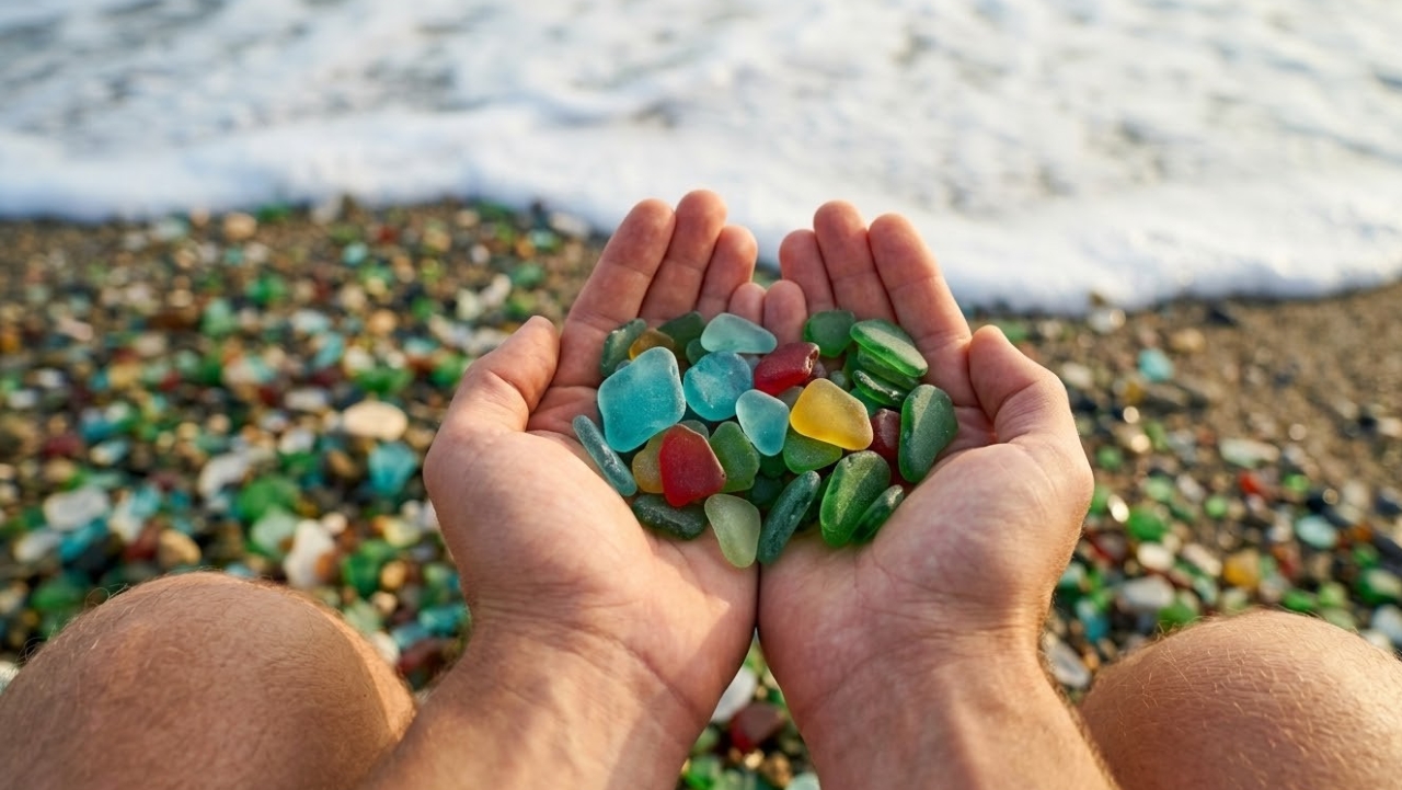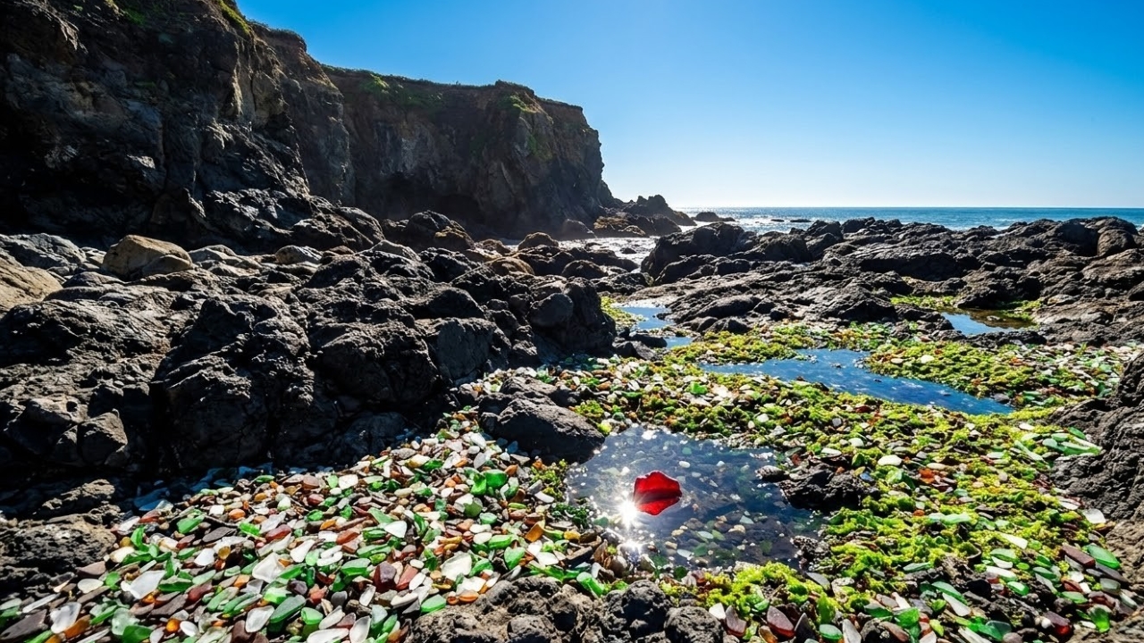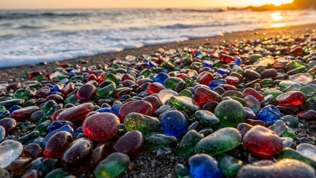 Como o oceano moldou as cores raras na praia de pedras de vidro?