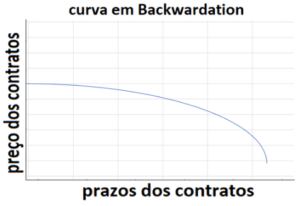 Backwardation é o oposto: o preço dos contratos futuros está mais baixo que o preço atual. Aqui o mercado está dizendo que o ativo tende a ficar mais barato no futuro, ou que há uma urgência muito grande no presente.
