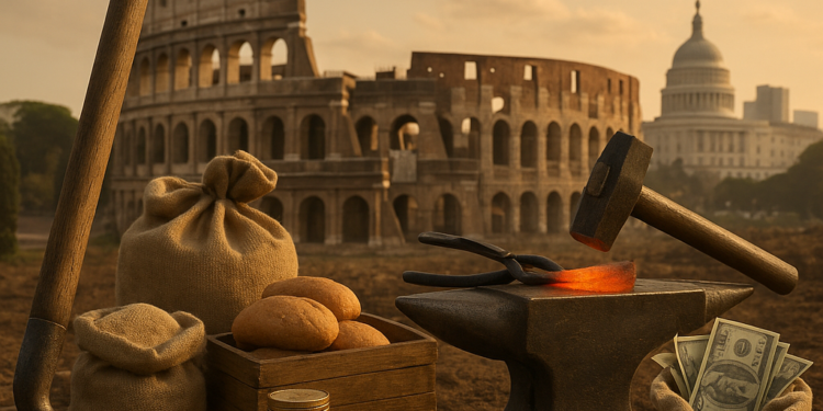 Todo império começa com uma enxada ou uma forja. Termina importando o que um dia dominou. Ao longo dos séculos, grandes potências econômicas seguem um roteiro recorrente: ascendem fabricando, atingem o auge inovando e declinam ao delegar a outros aquilo que antes produziam com excelência. No século XXI, esse ciclo está mais uma vez em curso, agora envolvendo Estados Unidos, China e uma nova constelação de periferias industriais emergentes.