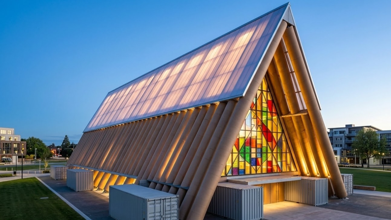 Em fevereiro de 2011, um terremoto de magnitude 6.3 destruiu a catedral neogótica de Christchurch, símbolo da cidade neozelandesa por mais de um século. O que veio em seguida desafiou qualquer lógica construtiva: um arquiteto japonês ergueu uma nova catedral com tubos de papelão, 8 contêineres marítimos e poliuretano impermeável, mais resistente aos terremotos do que o edifício de pedra que ela substituiu.
