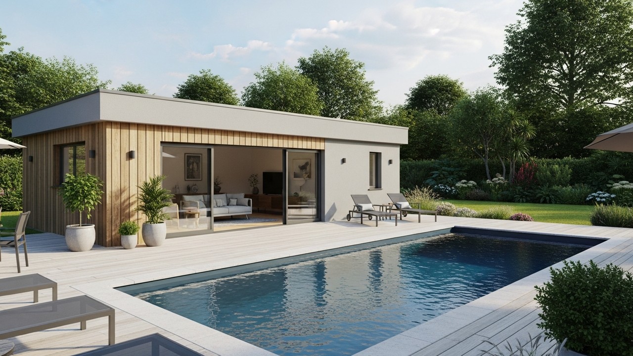A decisão de posicionar a construção nos fundos do lote é uma estratégia arquitetônica brilhante para otimizar o espaço. Ao liberar a parte frontal, o projeto ganha uma área de lazer ampla com garagem, jardim e piscina, criando uma barreira visual que aumenta a privacidade dos moradores em relação à rua.