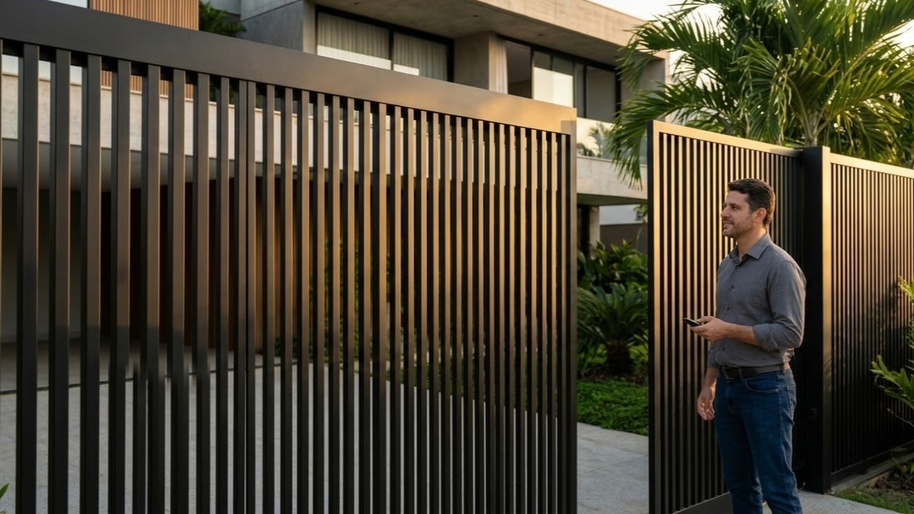 Substituir os pesados e antigos portões de ferro é o primeiro passo para quem deseja transformar completamente a fachada da própria residência. A arquitetura atual valoriza linhas minimalistas e materiais que unem alta segurança com sofisticação visual de forma muito mais discreta e funcional.