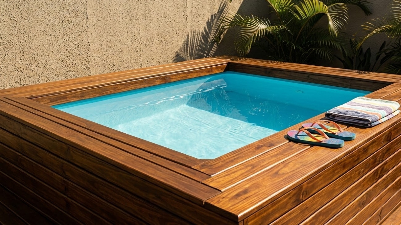 Enquanto os modelos convencionais de fibra custam milhares de reais e exigem buracos gigantescos com escavadeiras, essa versão caseira resolve o problema do calor em espaços externos reduzidos. Quem tem um quintal pequeno agora pode desfrutar de um mergulho gelado sem comprometer a circulação da área de serviço.