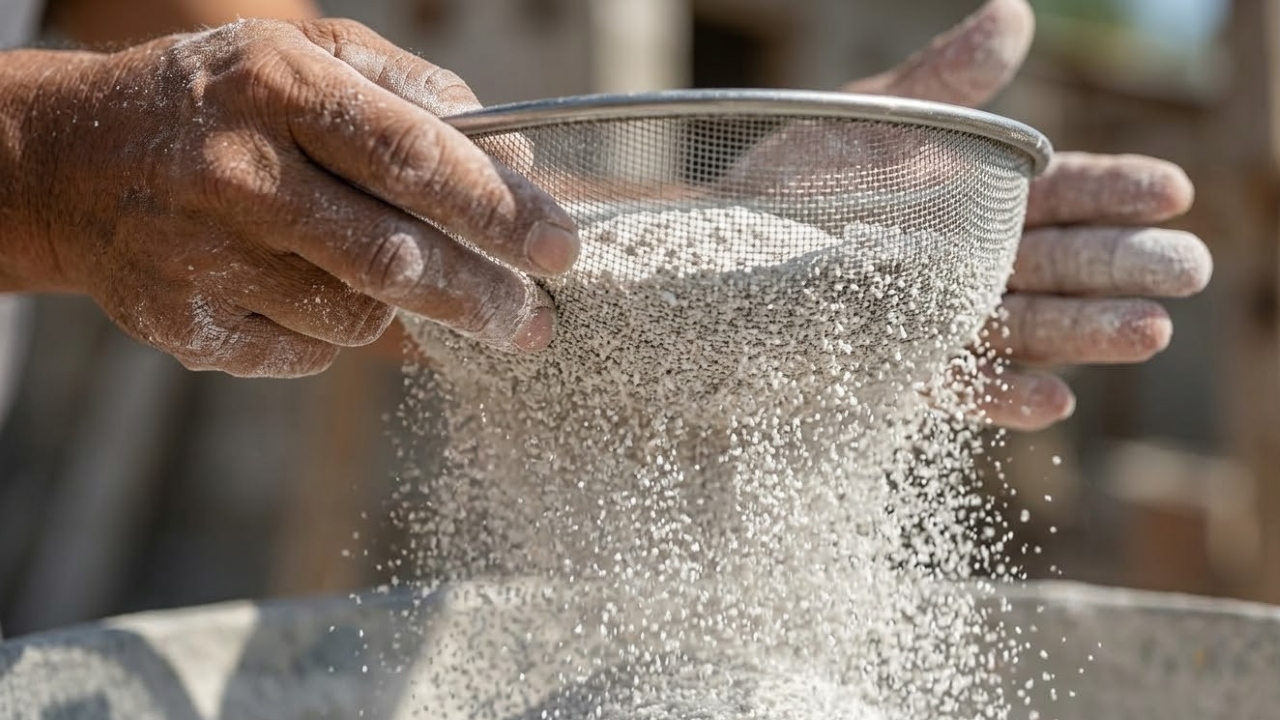 - Água suficiente para consistência de argamassa firme, sem excesso de fluidez