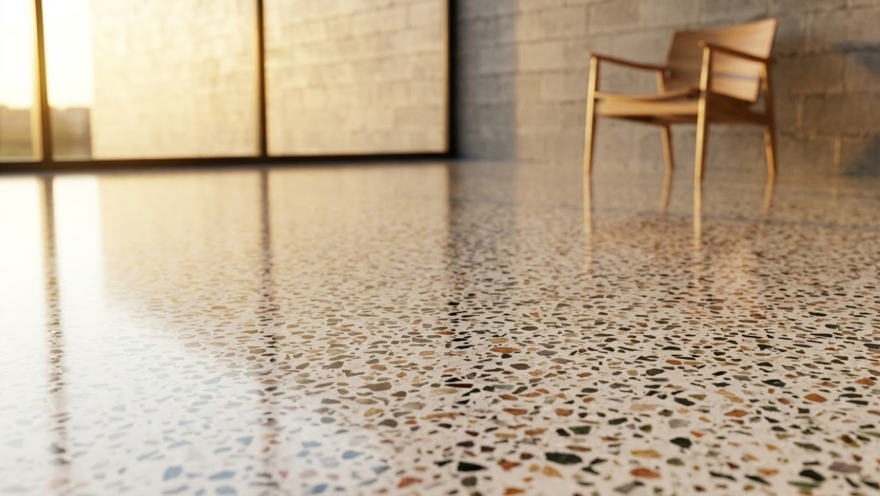 A mistura de pó de mármore com cimento branco cria um revestimento liso, resistente e com aparência de pedra natural sem precisar de granito ou porcelanato. O resultado é a base do granilite, do marmorite e do terrazzo, acabamentos que atravessam séculos e que hoje voltam como tendência contemporânea na arquitetura de interiores.