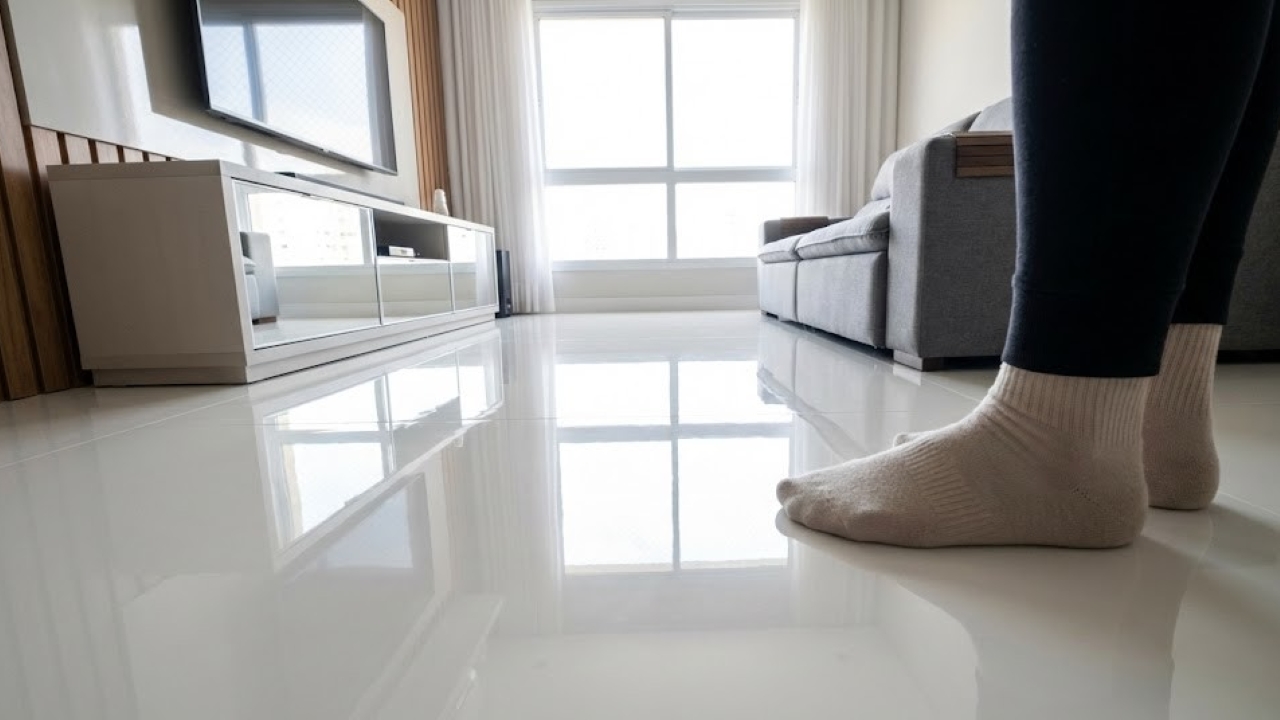 A “mágica” acontece através de uma mistura de resina autonivelante que é despejada diretamente sobre a cerâmica ou contrapiso. O material cria uma camada fina (geralmente de 1 a 5 mm) que preenche frestas e imperfeições automaticamente.