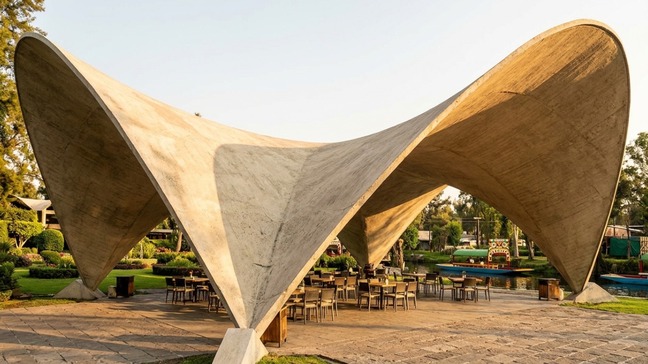A popularização global das estruturas orgânicas ultrafinas ganhou notoriedade através do visionário arquiteto espanhol Félix Candela. Após se mudar definitivamente para a Cidade do México, ele elevou o cálculo estrutural ao seu ápice geométrico ao projetar e erguer mais de 300 obras públicas utilizando o elegante formato matemático do paraboloide hiperbólico.