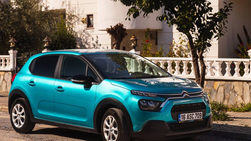 Citroën C3 azul no meio da rua estacionado – Créditos: depositphotos.com / everyonensk