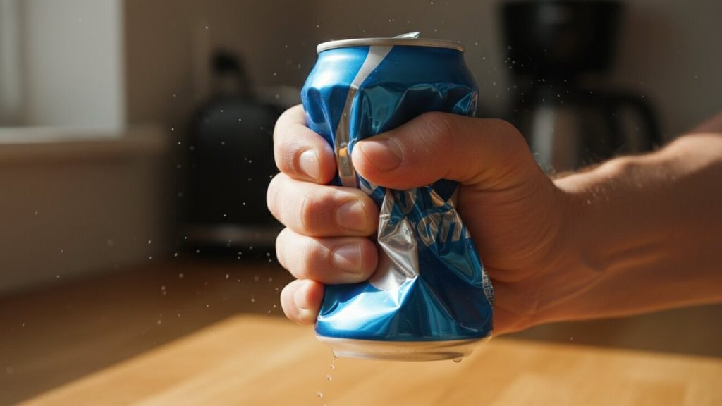 Amassar uma lata é uma forma socialmente aceitável e segura de satisfazer esse impulso. Além disso, há um elemento de ordem e propósito: ao reduzir o volume da lata, você a está preparando para a reciclagem, transformando um ato momentaneamente “destrutivo” em algo funcional e ecologicamente correto.