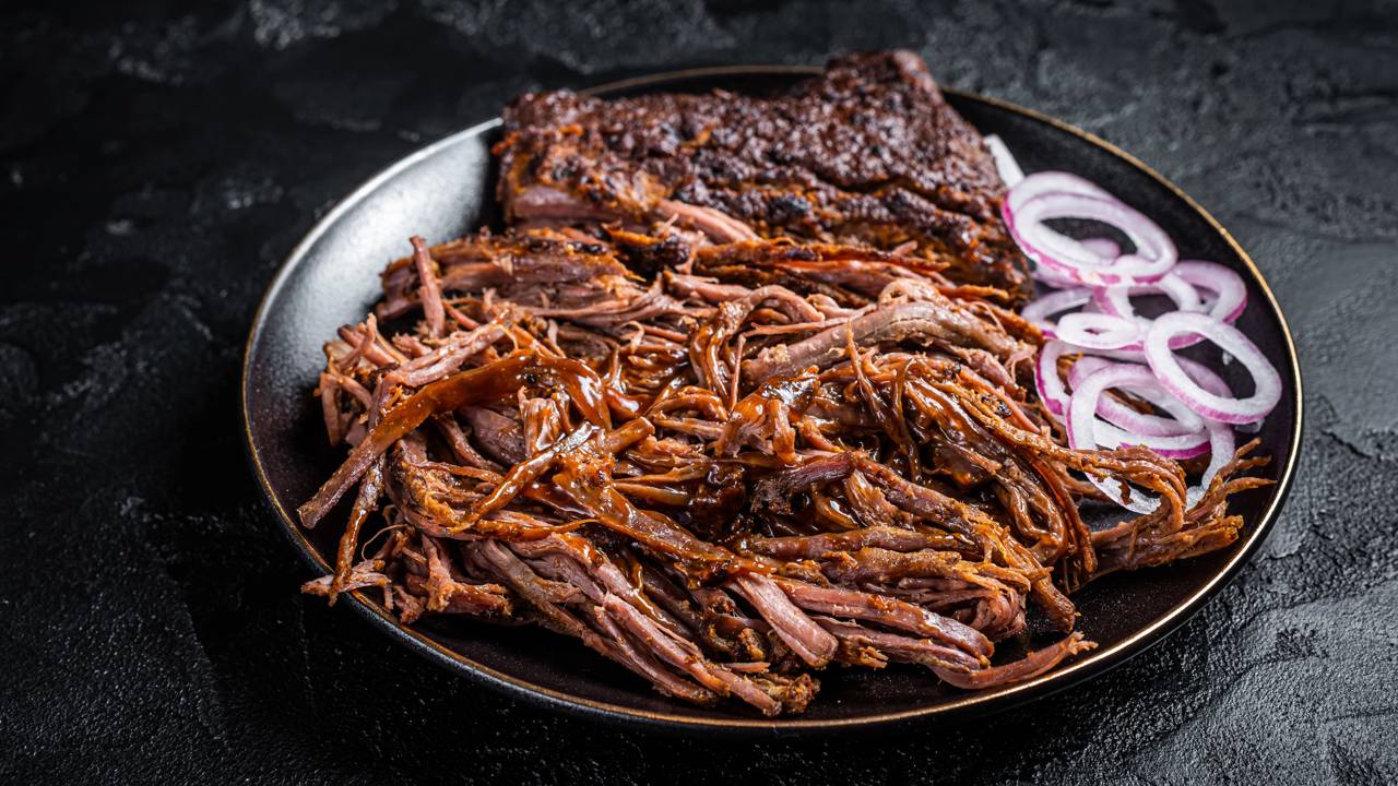 Carne desfiada ao molho barbecue servida em prato (Créditos: depositphotos.com / arskajuhani)