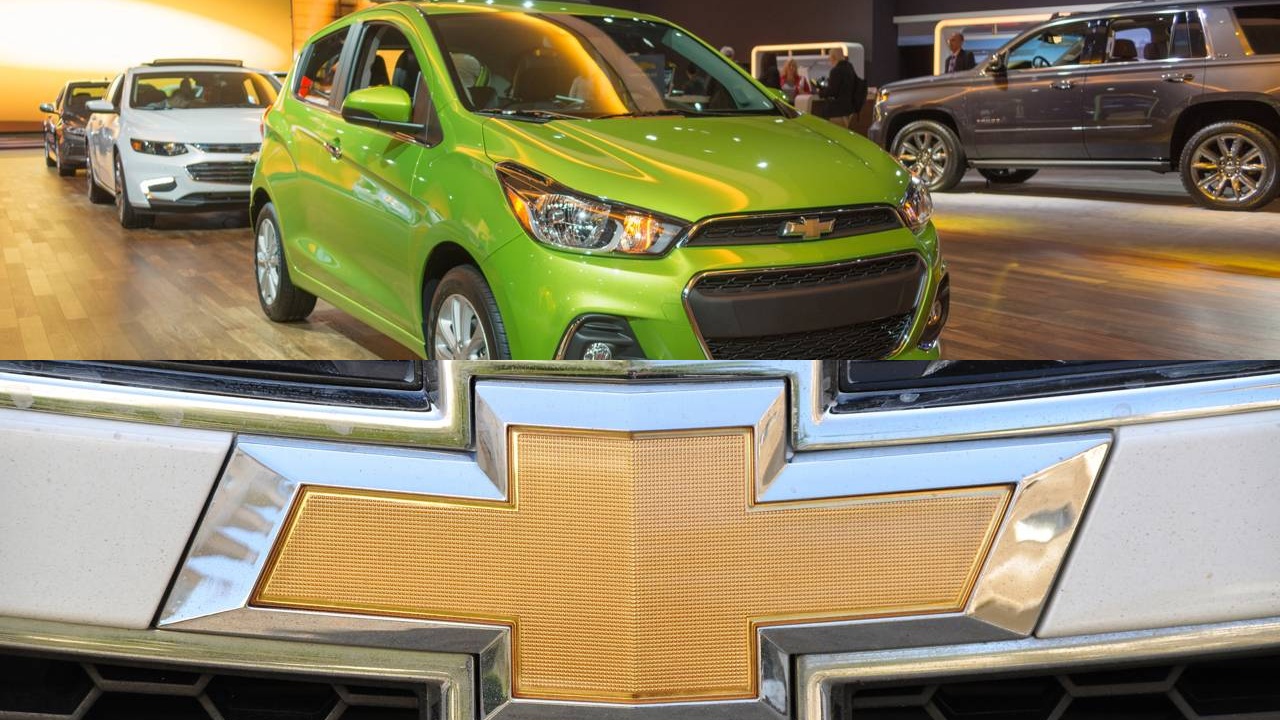 Chevrolet Spark em exibição e Símbolo da Chevrolet - Créditos: depositphotos.com / bettorodrigues - Créditos: depositphotos.com / sserdarbasak