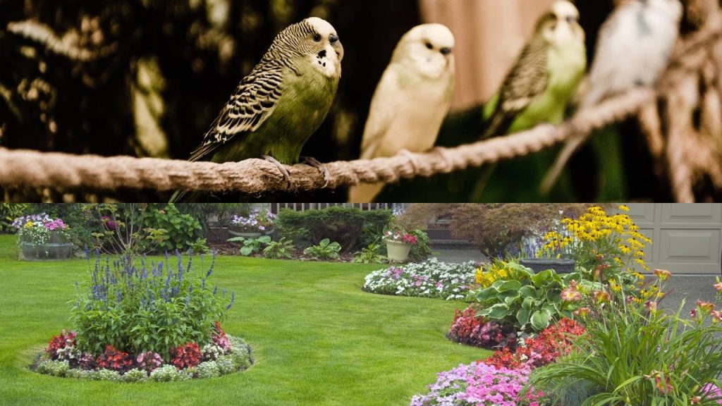 Casa e jardim impecáveis e Foco seletivo de papagaios sentados em uma corda no zoológico – Créditos: depositphotos.com / fotomine – Créditos: depositphotos.com / VitalikRadko