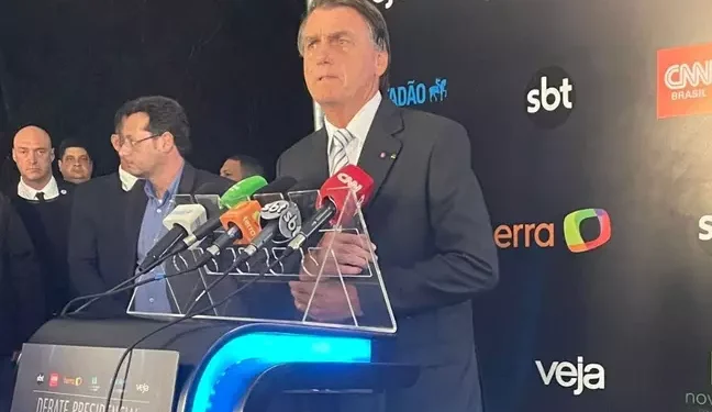 O presidente e candidato à reeleição Jair Bolsonaro (PL) alfinetou o candidato Luiz Inácio Lula da Silva (PT), por sua ausência no debate realizado por Terra, Estadão/Rádio Eldorado, SBT, CNN, Veja e Rádio Nova Brasil nesta sexta-feira, 21. Bolsonaro afirmou que “o outro lado só se esconde”.
