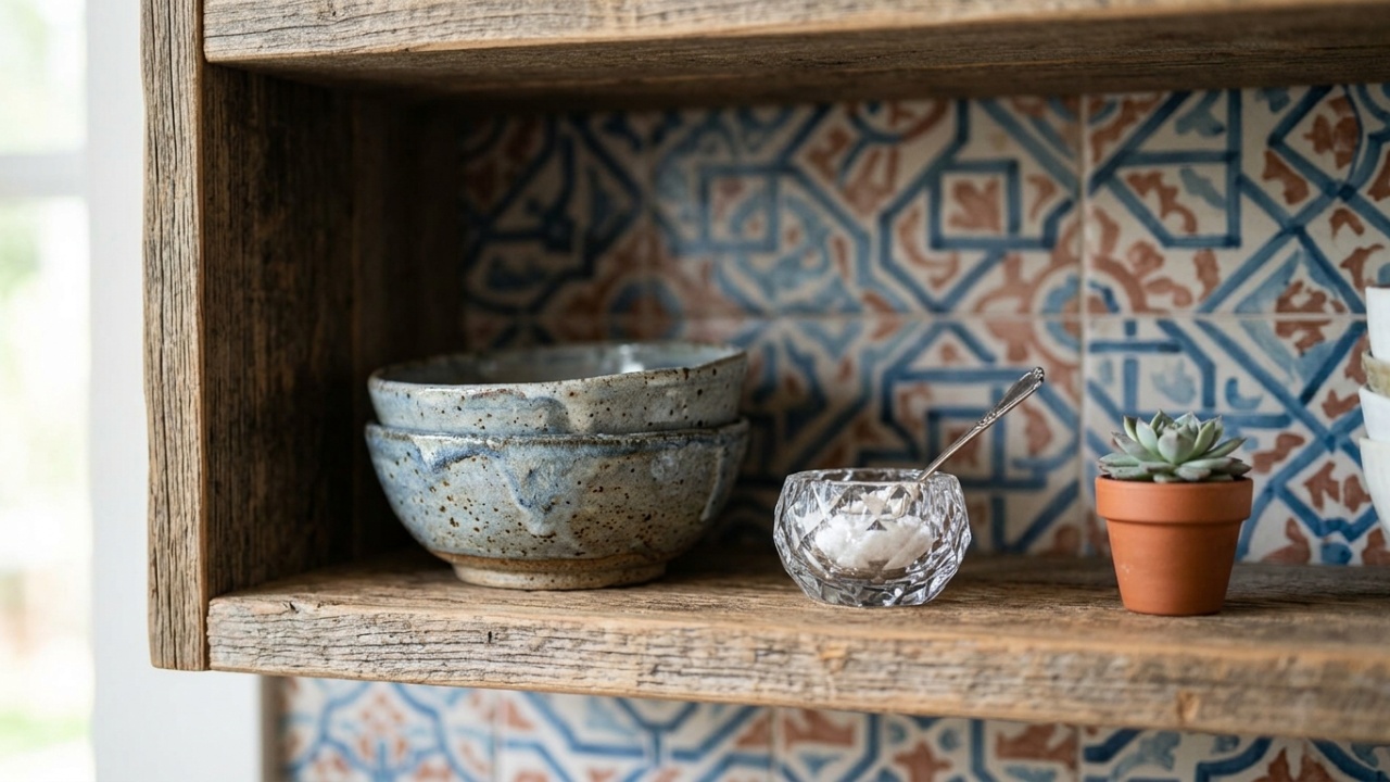 • Materiais artesanais: ladrilho hidráulico, madeira de demolição e elementos com valor emocional para dar identidade ao espaço