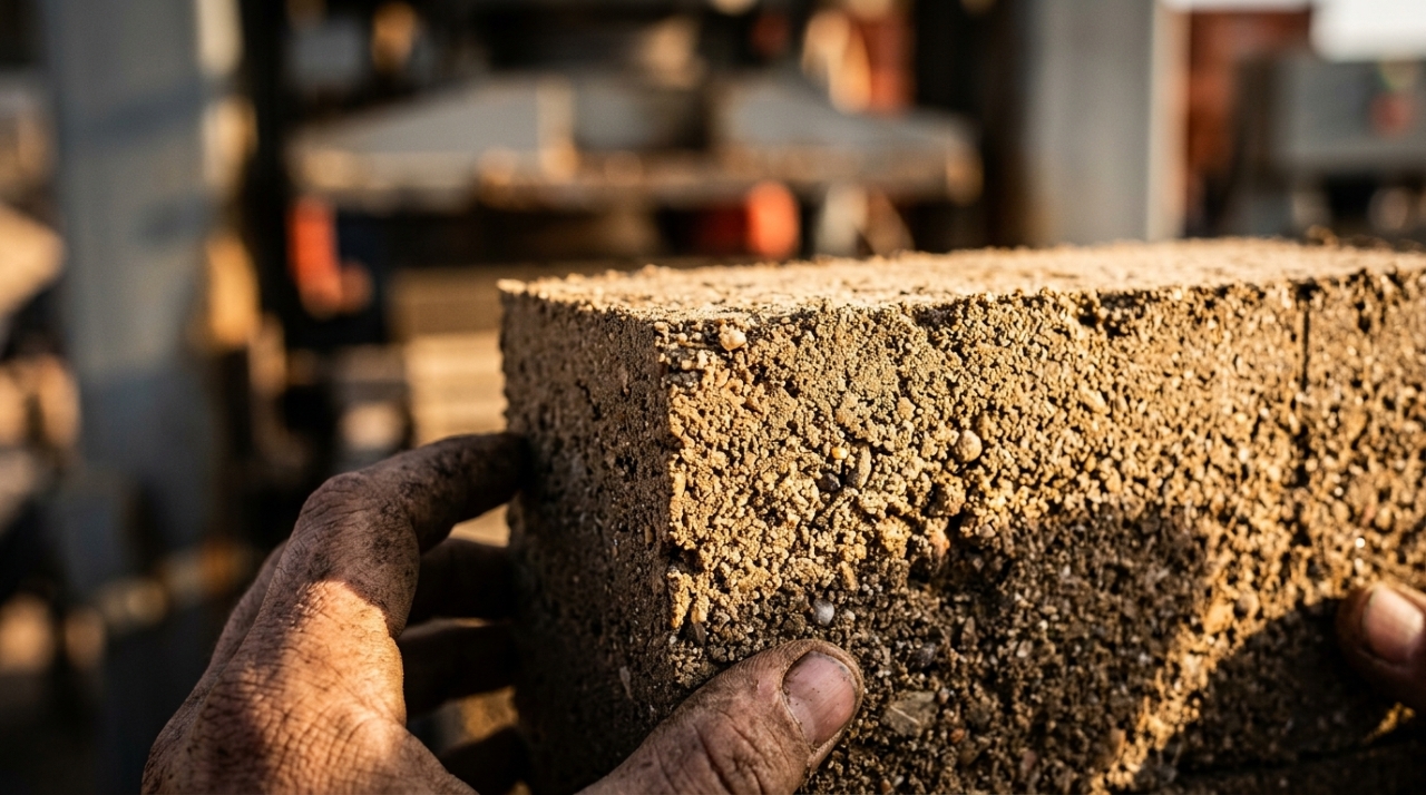 A produção desse bloco sustentável abandona os fornos tradicionais poluentes. A composição padrão exige uma mistura precisa contendo de 85 a 90% de solo arenoso, combinada com 8 a 15% de cimento Portland e uma quantidade mínima de água apenas para garantir a umidade de compactação.
