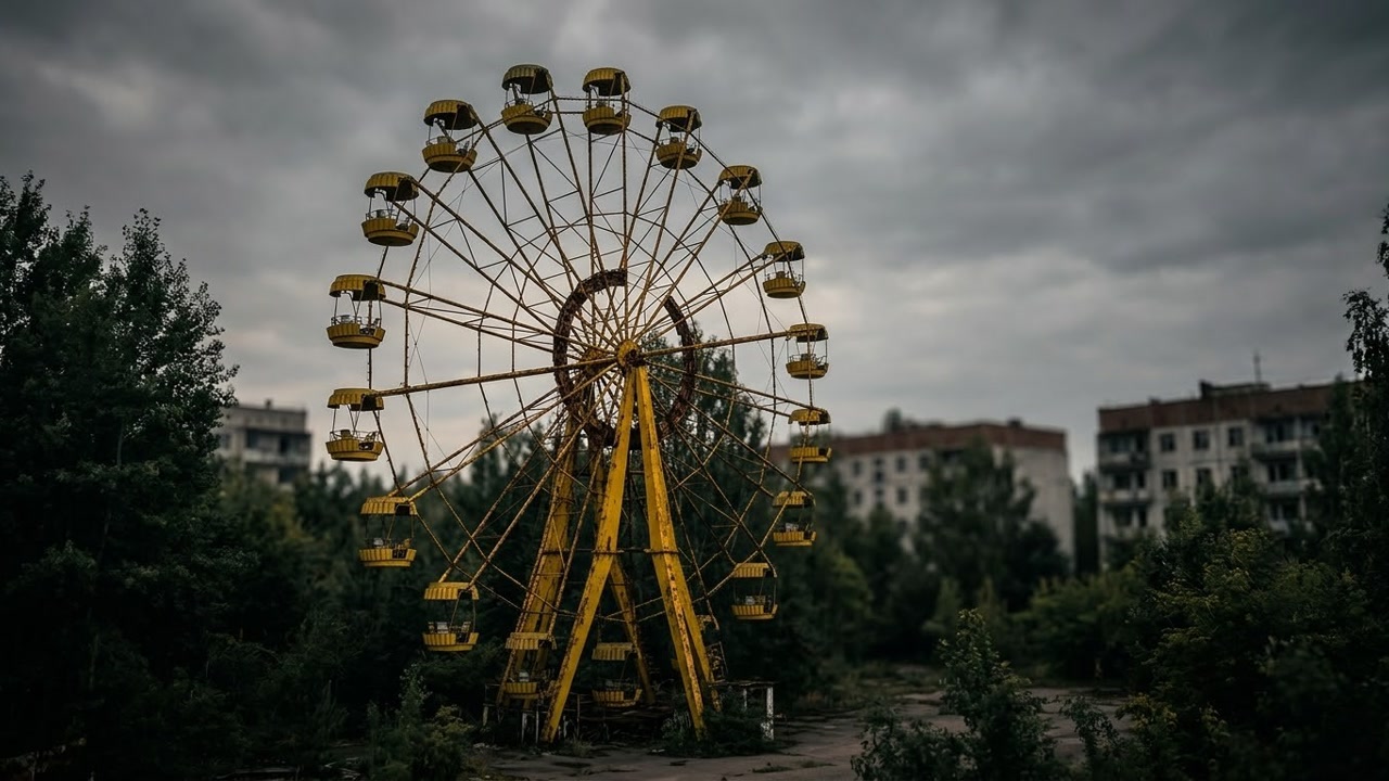 Em Pripyat, o parque de diversões com roda-gigante e carrinhos de choque nunca chegou a ser inaugurado. A abertura estava marcada para 1º de maio de 1986, cinco dias após o desastre. A roda-gigante amarela, paralisada entre os prédios abandonados, se tornou o símbolo mais fotografado da cidade fantasma.