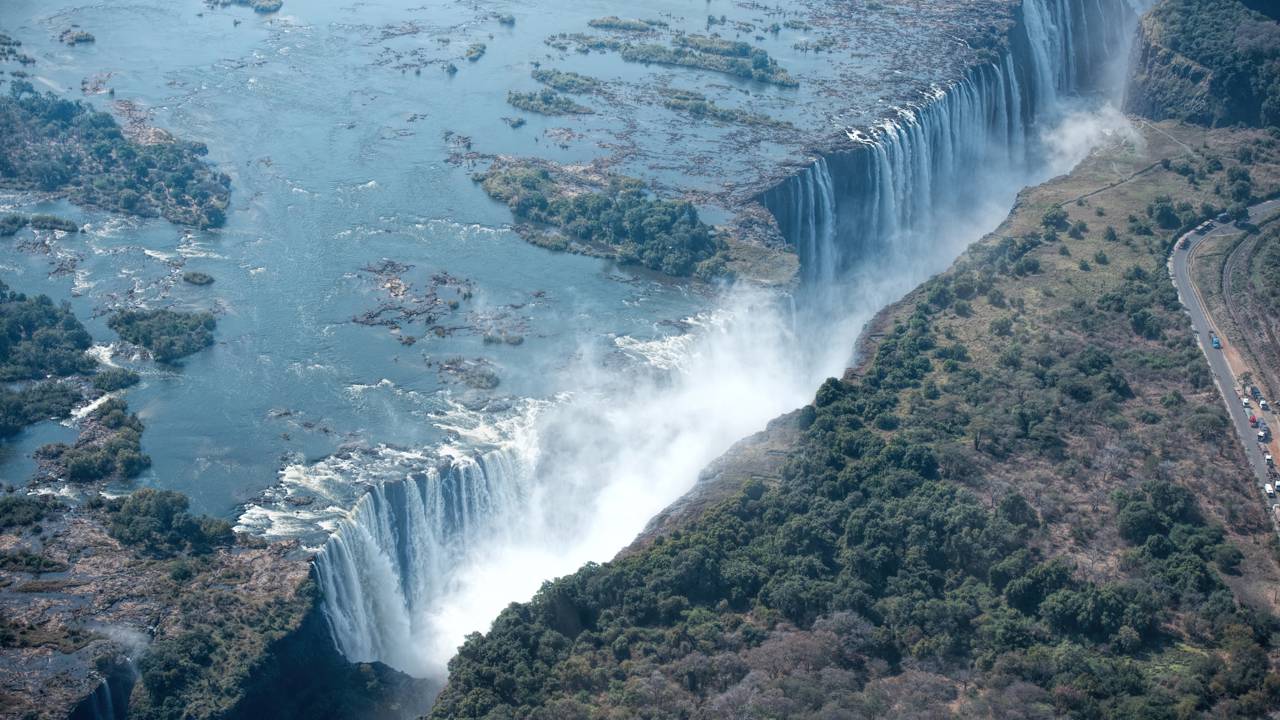 A poucos centímetros do precipício, turistas se debruçam sobre a borda e encaram a queda d’água mais larga do planeta. A Devil’s Pool é uma piscina natural formada na crista das Cataratas Vitória, no lado zambiano da fronteira com o Zimbábue. Quem entra ali nada sobre basalto de 180 milhões de anos, separado do abismo apenas por uma fina barreira de rocha.