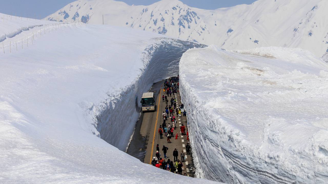 No topo dos Alpes Japoneses, uma proeza da engenharia transforma um dos lugares com maior queda de neve do mundo em um corredor monumental. Conhecido como o “telhado do Japão”, a região de Tateyama recebe depósitos de gelo que superam a altura de prédios de seis andares.