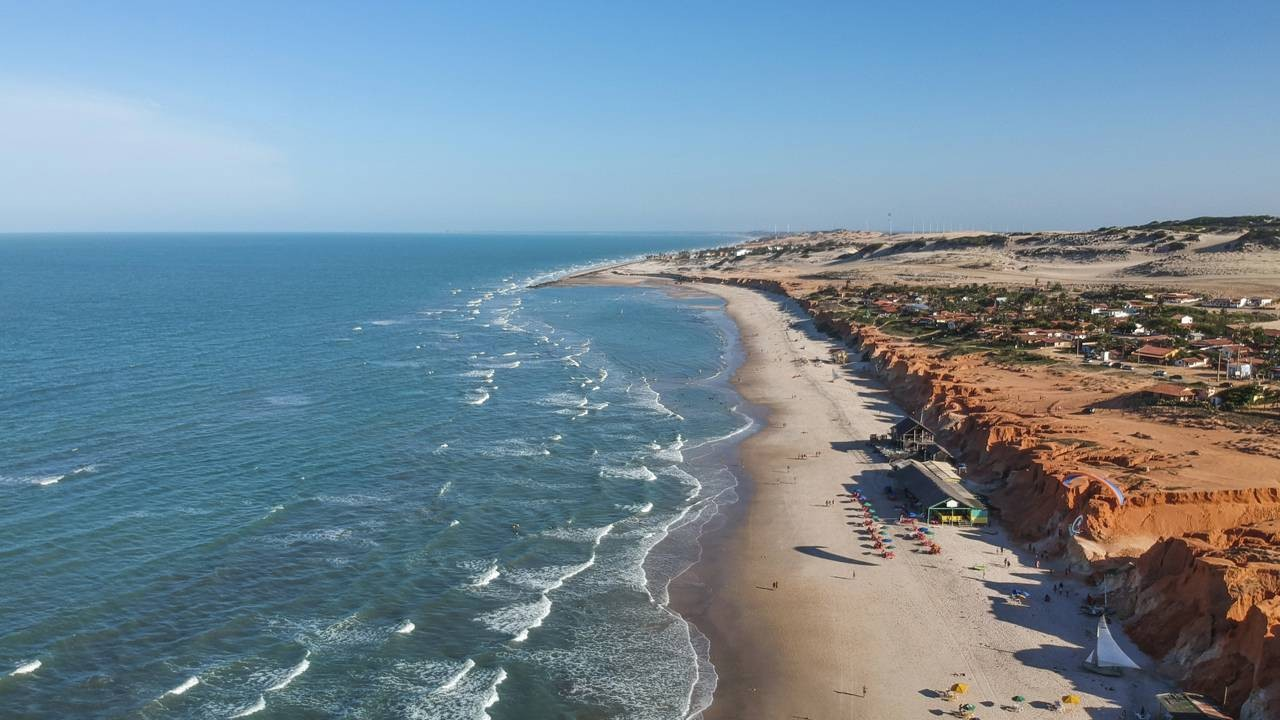 O vilarejo está no município de Aracati, no litoral leste do Ceará, a cerca de 163 km de Fortaleza. A região integra uma área de proteção ambiental criada para preservar dunas, falésias e ecossistemas costeiros, conforme informações da Superintendência Estadual do Meio Ambiente. Essa combinação de paisagem intocada e clima ensolarado ajuda a explicar o encanto crescente do lugar.