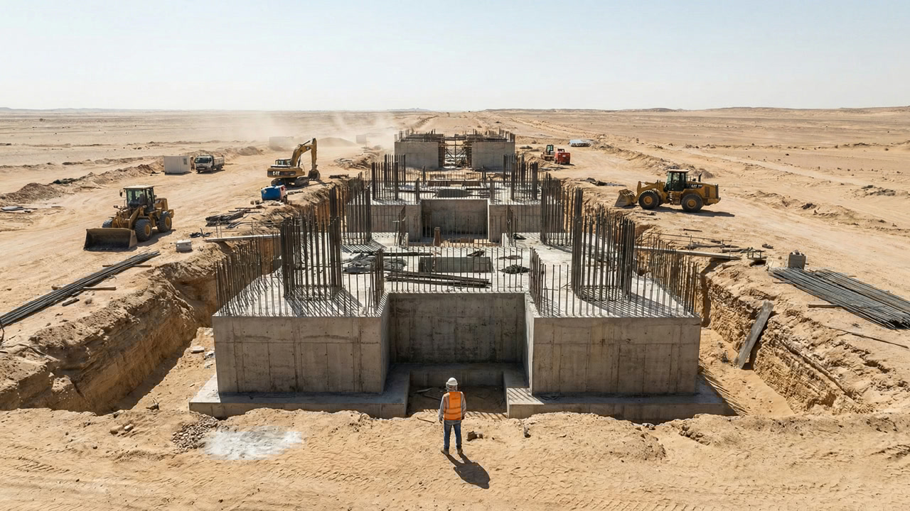 Na prática, porém, o progresso ficou muito aquém do cronograma. A primeira fase, que deveria ter 20 módulos habitacionais espalhados por 16 km, foi reduzida para 12, depois 7, depois 4 e, no final de 2023, para apenas 3. Com a redução, milhares de estacas de fundação já cravadas no deserto ficaram sem uso. Um gerente sênior de construção ouvido pelo Financial Times descreveu a situação como resultado de “tentar correr antes de saber andar”. Até o final de 2025, apenas 2,4 km de extensão haviam sido concluídos em termos de estrutura básica, sem nenhum morador.