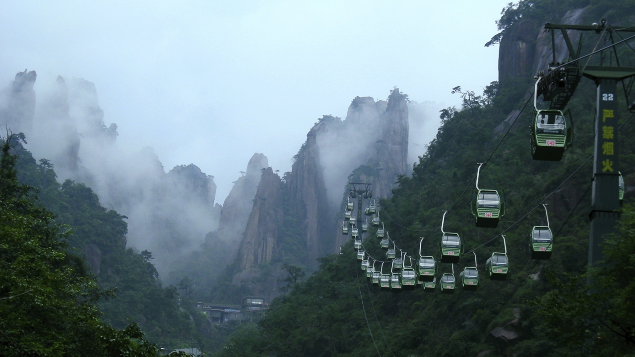• O acesso principal é realizado por um teleférico que custa 70 yuans e leva 15 minutos.