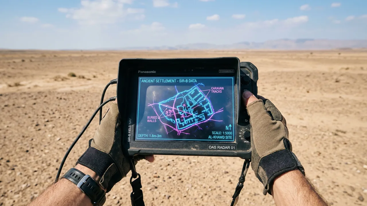 Em 1984, o ônibus espacial Challenger sobrevoou o sul de Omã usando o radar SIR-B, capaz de penetrar camadas de areia seca e revelar estruturas geológicas abaixo da superfície. Imagens do satélite Landsat e do satélite francês SPOT complementaram os dados. O resultado surpreendeu: uma rede de trilhas antigas, algumas passando sob dunas de até 100 metros de altura, convergia para o oásis de Shisr, no sul de Omã.