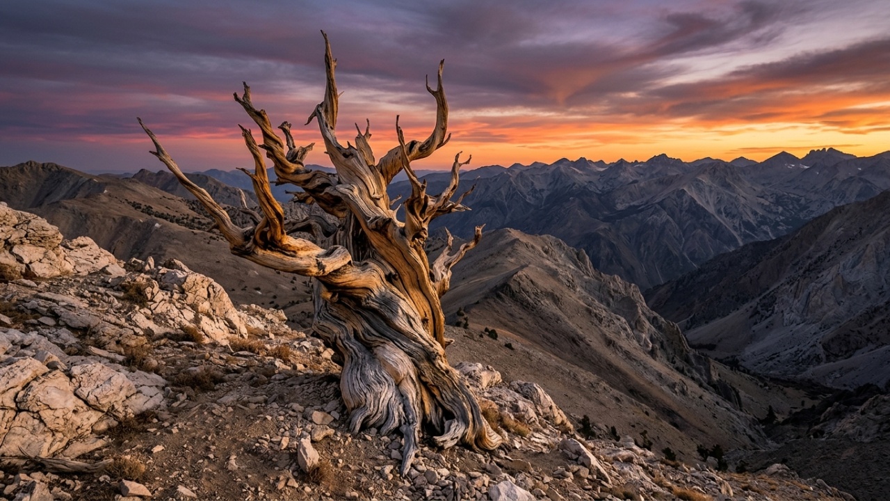 Nas altitudes elevadas das Montanhas Brancas da Califórnia, acima da marca de três mil metros, resiste uma das presenças biológicas mais resilientes da Terra. O pinheiro batizado de Matusalém possui impressionantes 4.857 anos de vida confirmados, o que significa que essa semente germinou por volta do ano 2833 a.C.