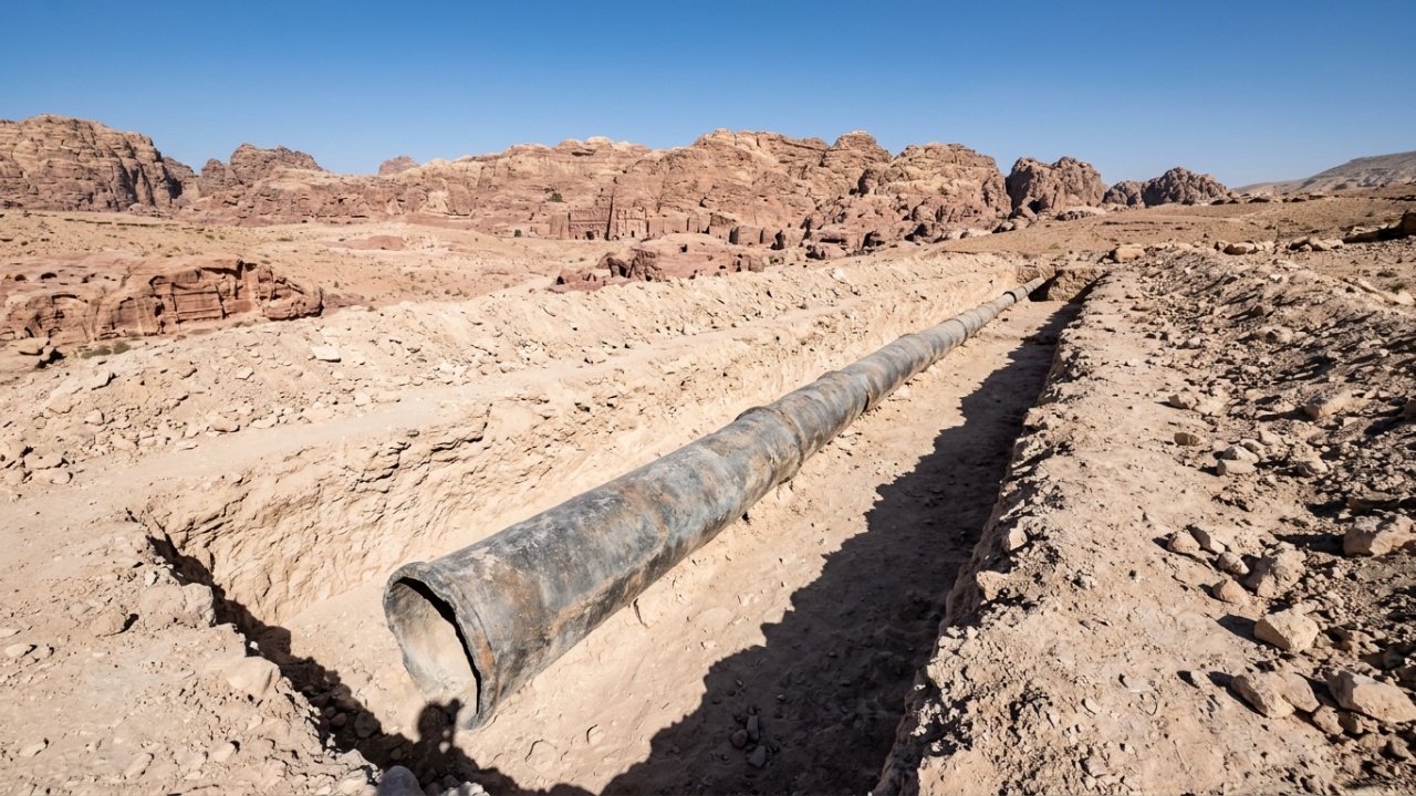 A tubulação operava como um sifão invertido: a água descia por gravidade a partir de um tanque regulador, percorria o cano sob pressão, vencia os desníveis do terreno acidentado e subia novamente até chegar aos reservatórios da cidade. A solução demonstra que os nabateus compreendiam com precisão o comportamento da água sob pressão em terreno árido.