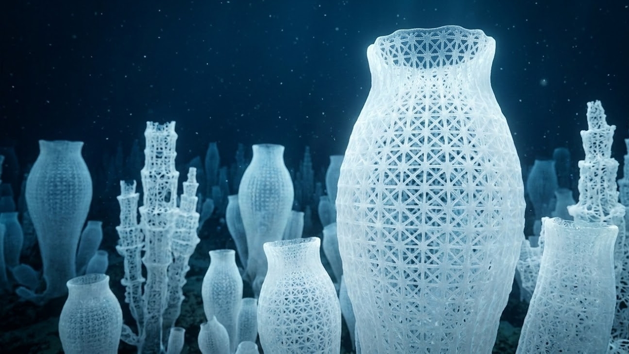 Explorar o fundo do Pacífico revela as incríveis esponjas de vidro, criaturas que constroem esqueletos de sílica pura e formam recifes que a ciência considerava extintos há milhões de anos