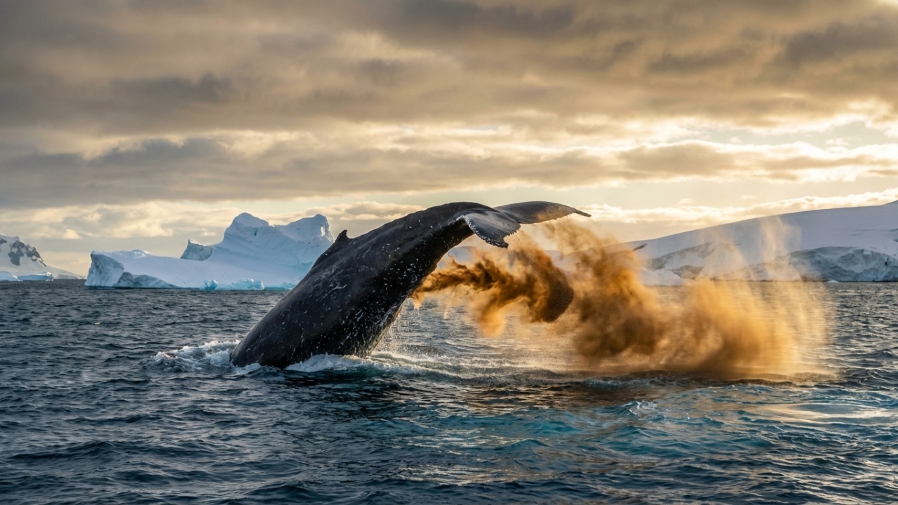 No Oceano Antártico, o ferro é o nutriente mais limitante para o crescimento do fitoplâncton: vastas extensões de água possuem nitrogênio e fosfato em abundância, mas crescimento praticamente nulo de algas por falta de ferro. É exatamente esse gargalo que as fezes das baleias resolviam naturalmente.