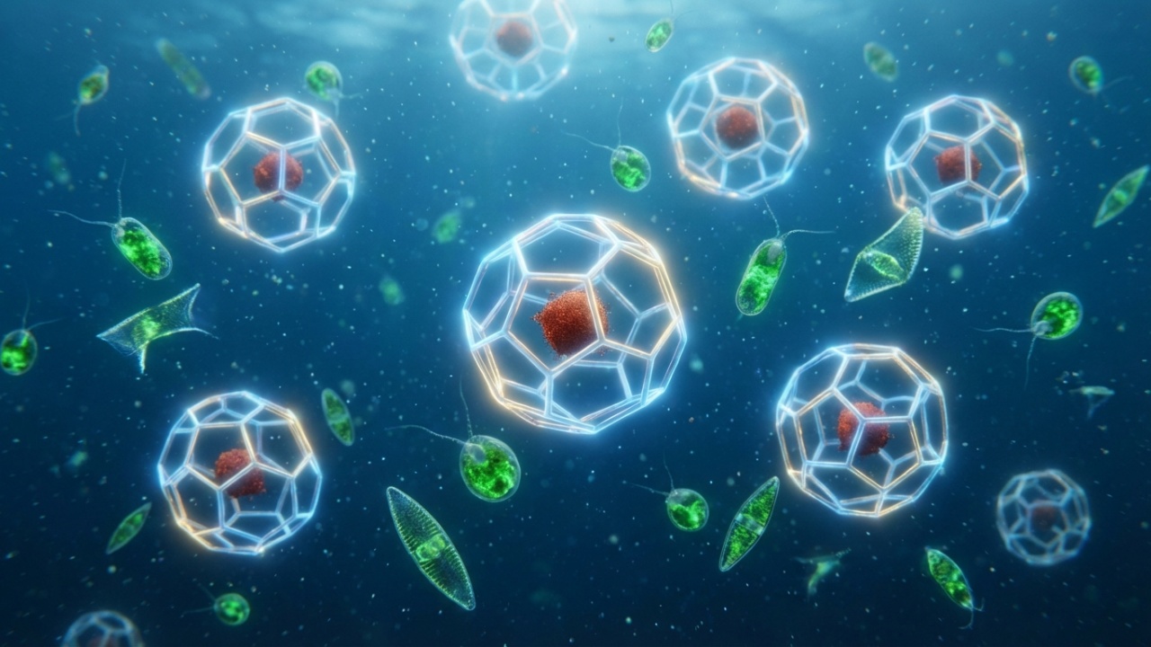 - O fitoplâncton se multiplica, absorve CO₂ atmosférico e sustenta toda a cadeia alimentar marinha a partir da base.