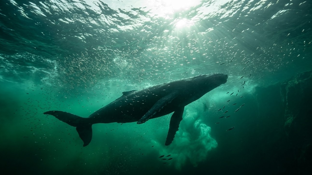 | Baleias (azul, jubarte e orca) | Coluna de água intermediária | Migração sazonal para caça em massa |