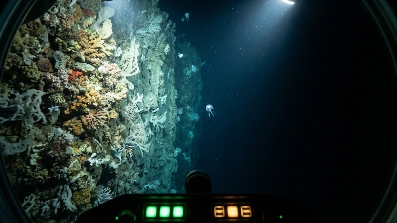 | Esponjas de vidro e corais frios | Paredes verticais profundas | Colonização estrutural de centenas de anos |