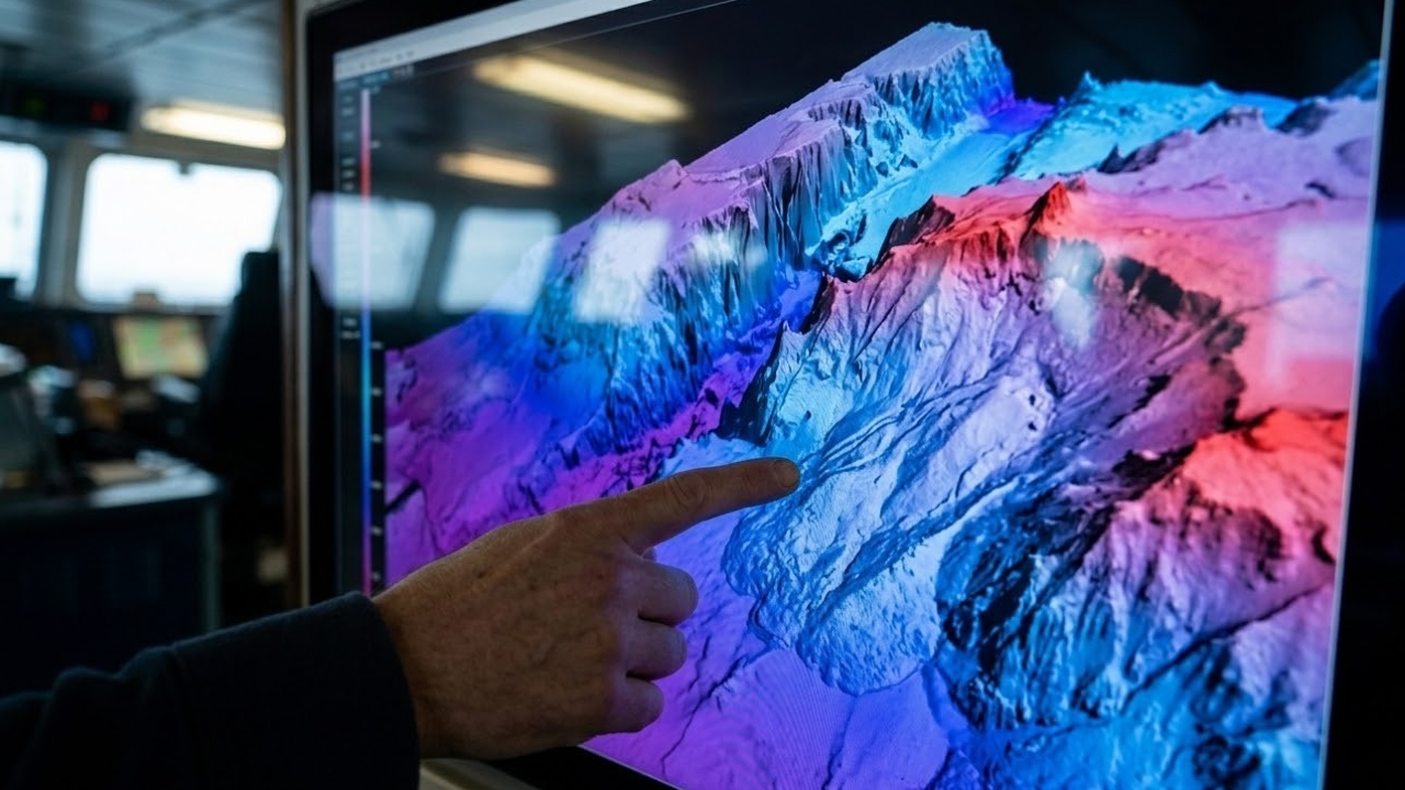 A resposta está na invisibilidade geográfica absoluta. Observando da janela de um avião ou do convés de um navio, a superfície gelada do Mar de Bering parece completamente uniforme e plana. O relevo oculto só ganha forma através de mapeamentos batimétricos com sonares ou por meio de imagens de satélite de altíssima resolução.