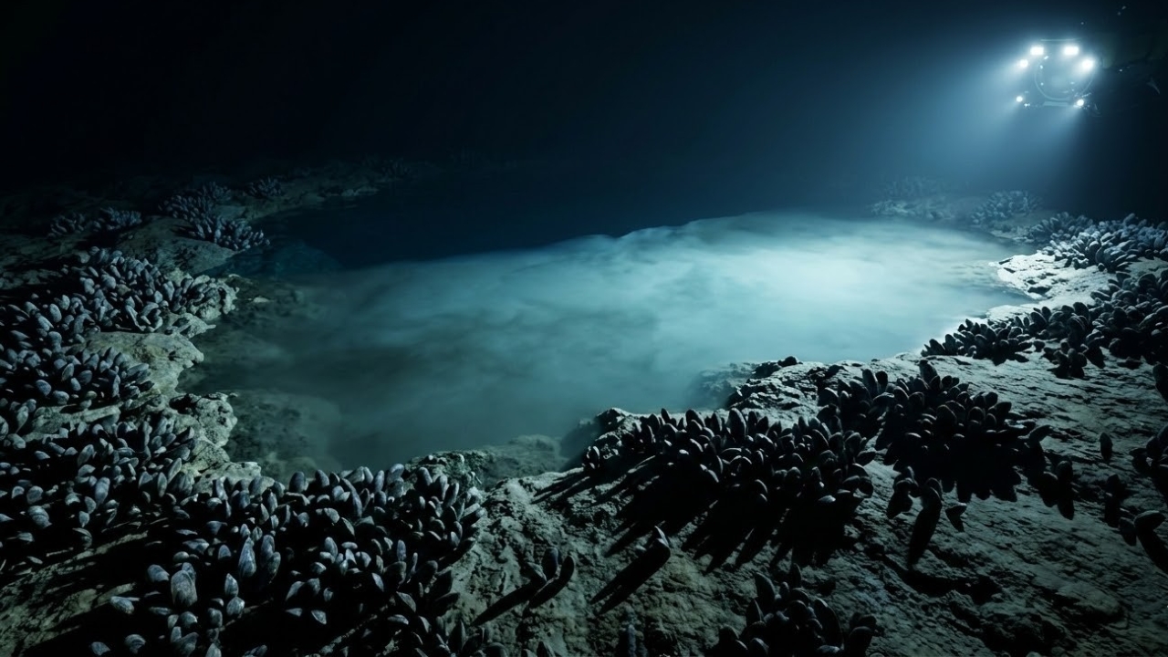 Colônias de mexilhões do gênero Bathymodiolus fixam-se exatamente na linha divisória onde a salmoura encontra a água oceânica limpa, criando um ecossistema de fronteira