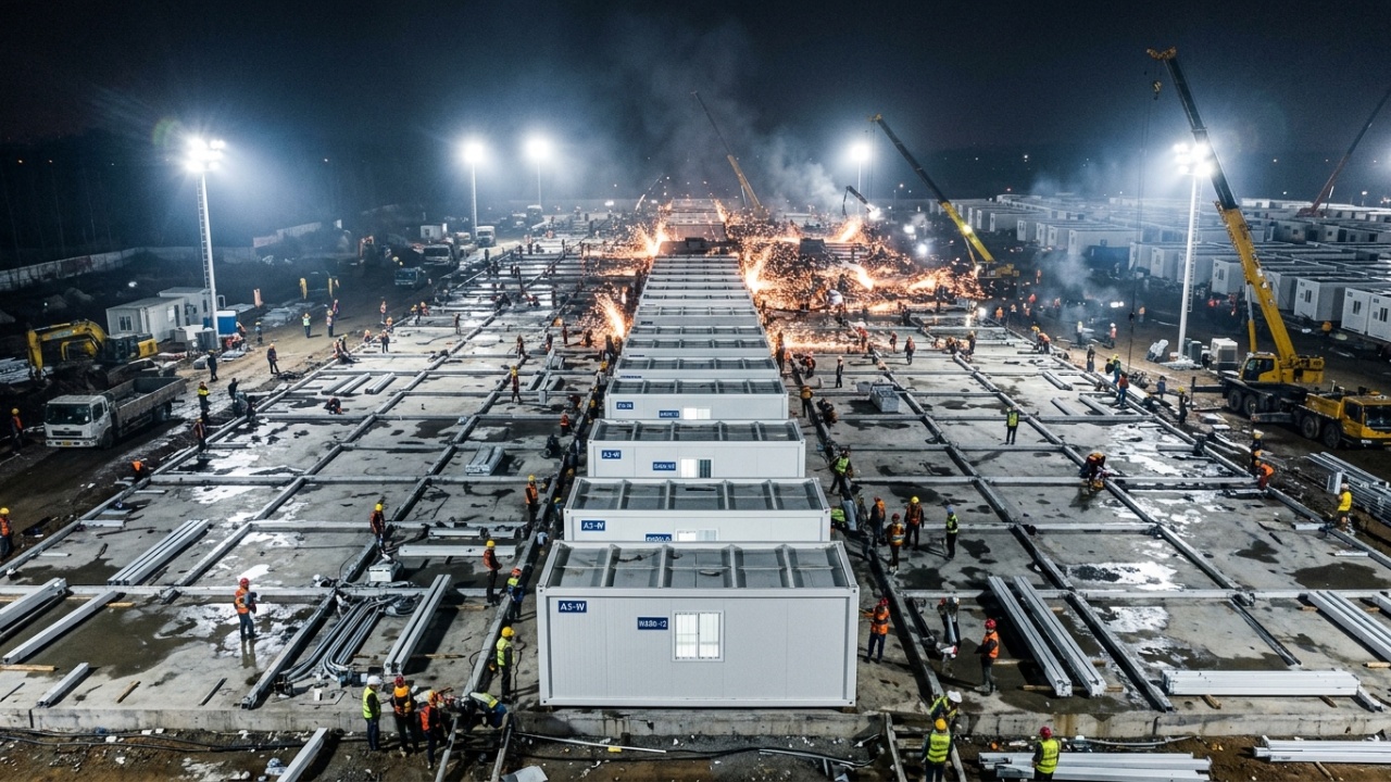 Mais de 4.000 trabalhadores e centenas de máquinas pesadas atuaram simultaneamente no canteiro de obras, que ocupava uma área de 34.000 metros quadrados. Os módulos pré-fabricados, semelhantes a contêineres, eram produzidos em fábricas e apenas montados no local, eliminando etapas tradicionais como cura de concreto e acabamentos demorados.