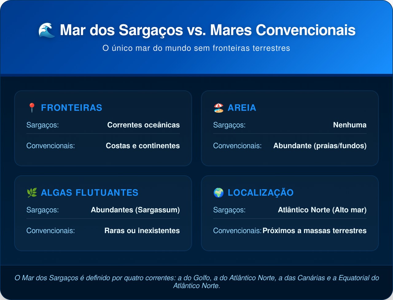 Veja as principais diferenças entre o Mar dos Sargaços e mares convencionais: