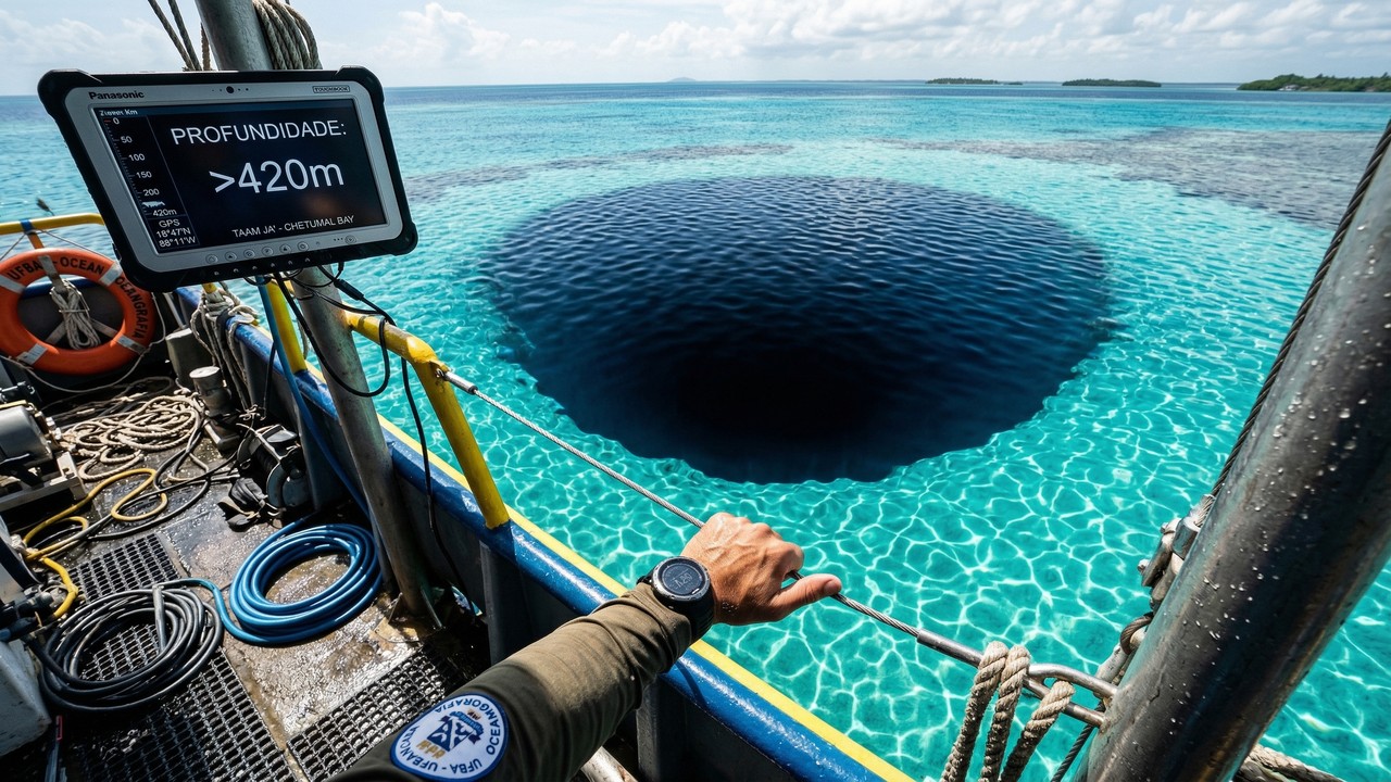 O Taam Ja’ Blue Hole, descoberto na Baía de Chetumal, no sul do México, é um dos achados mais intrigantes da oceanografia moderna. Com mais de 420 metros de profundidade e fundo ainda não alcançado, esse abismo levanta questões sobre geologia, ecossistemas e a própria evolução do planeta.