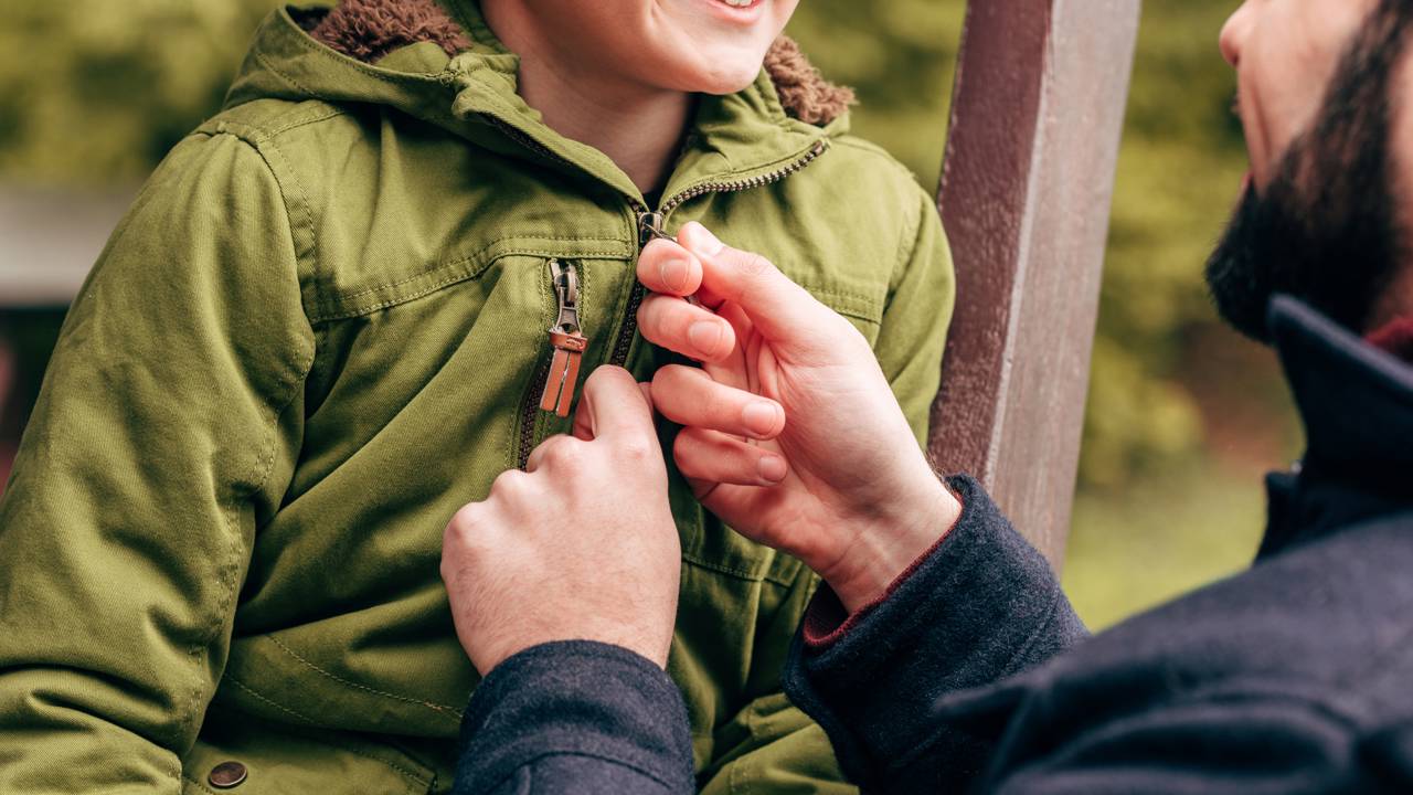 Pai com filho pequeno, fechando o zíper - Créditos: depositphotos.com / AlexLipa