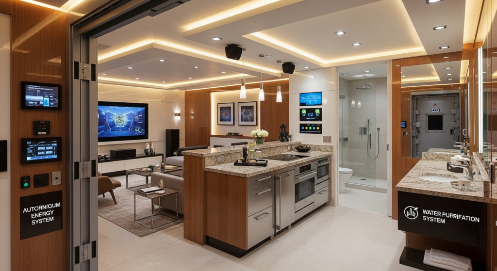 A tecnologia de sobrevivência é de ponta. Os abrigos são projetados para operar “fora da rede” (off the grid), com sistemas de energia, água e segurança que garantem a autossuficiência por meses. A tecnologia de um bunker de luxo inclui: