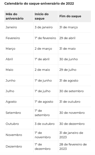 O saque fica disponível por três meses, a partir do primeiro dia útil do mês de aniversário do trabalhador.