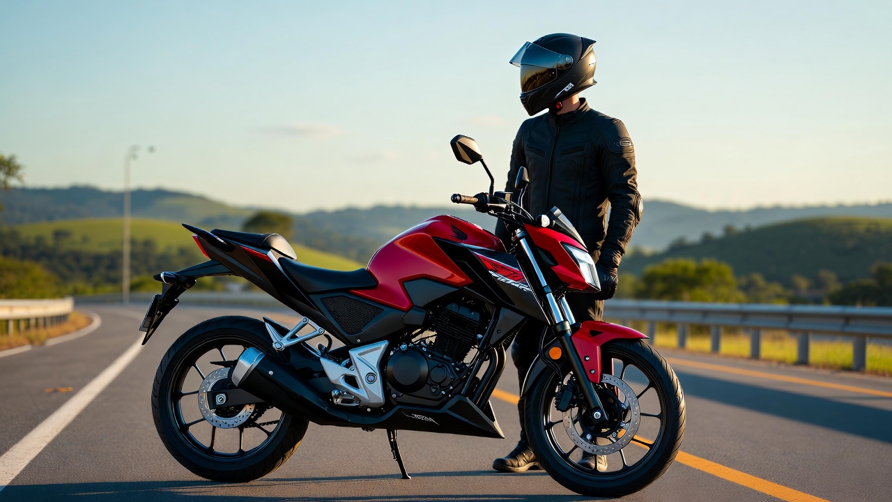 Motocicleta Honda Twister 300F em alta velocidade em uma estrada ensolarada