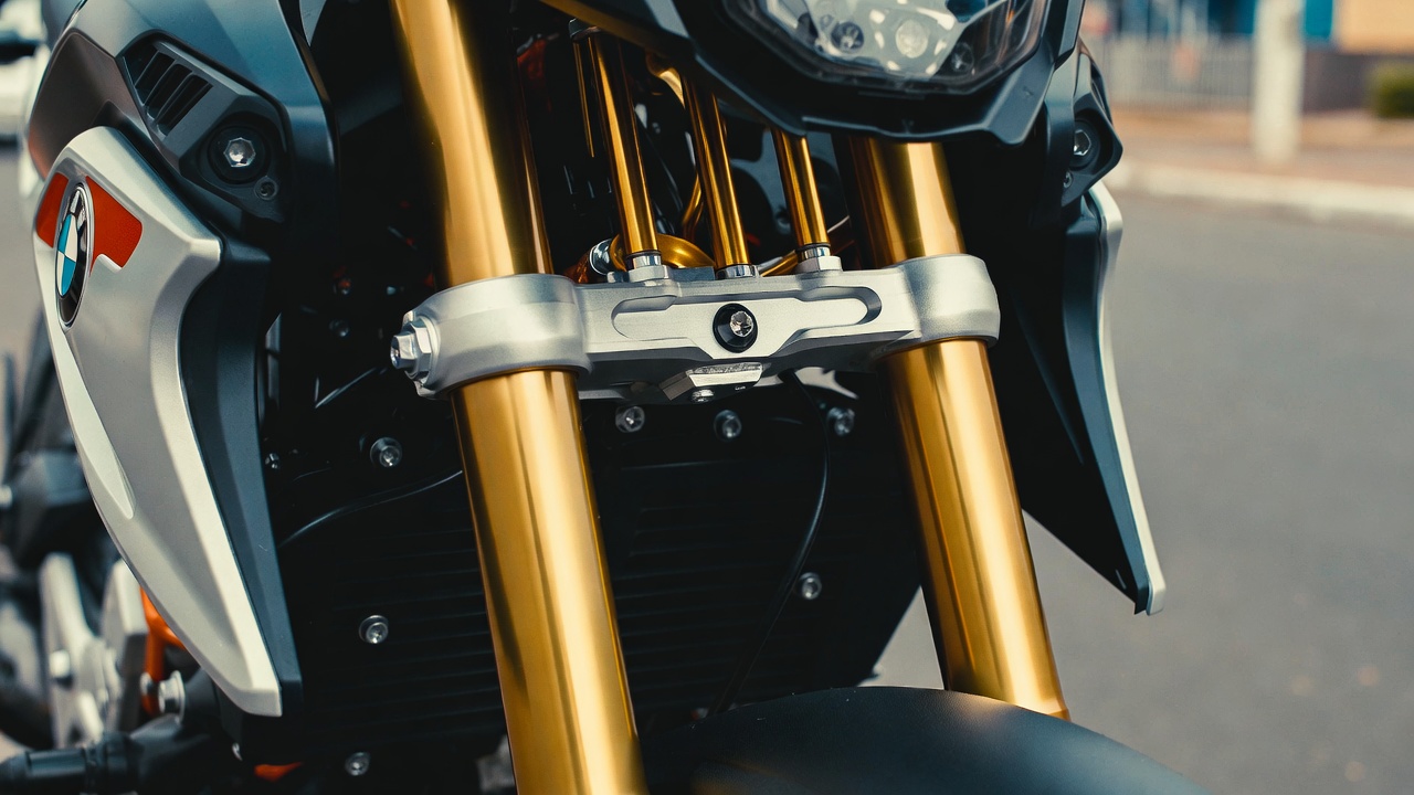 Como a suspensão invertida da BMW G 310 GS melhora a absorção?