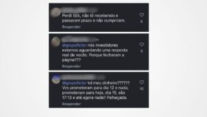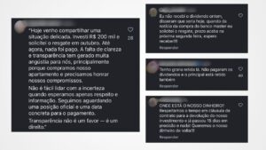 Nos comentários, diversos usuários afirmam que estão há semanas ou meses aguardando o recebimento dos valores investidos, sem sucesso. Um dos investidores relata ter aplicado cerca de R$ 200 mil e solicitado o resgate ainda em outubro, sem ter recebido qualquer pagamento até o momento.